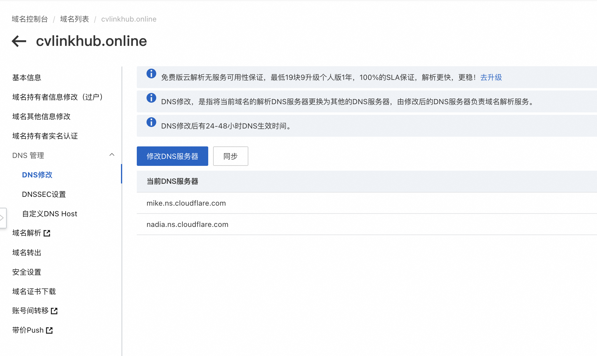 上面的操作操作完以后,还要等一会,没事刷新一下看看,Cloudflare 域的状态是否为活动状态。